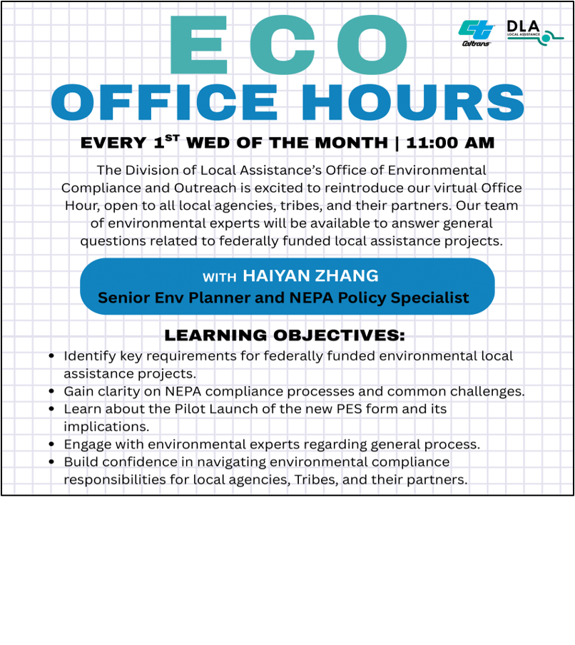 ECO Office Hours is back! Join the first session focused on NEPA-related questions, especially following the pilot launch of the new PES form