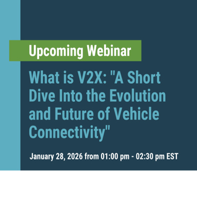 The National Operations Center of Excellence (NOCoE) is hosting a free webinar on What is V2X: A Short Dive Into the Evolution & Future of Vehicle Connectivity. This webinar offers a broad overview of the context and background of V2X, explaining how vehicle connectivity ...