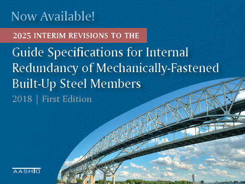 The American Association of State Highway & Transportation Officials (AASHTO) has released the 2025 Interim Revisions to its "Guide Specifications for Internal Redundancy of Mechanically-Fastened Built-Up Steel Members", originally published back in 2018.