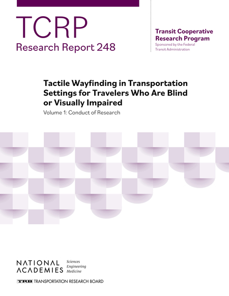The Transit Cooperative Research Program's (TCRP) Tactile Wayfinding in Transportation Settings for Travelers Who Are Blind or Visually Impaired explains how tactile wayfinding features can help people who are blind or have low vision move safely and independently through transportation environments.