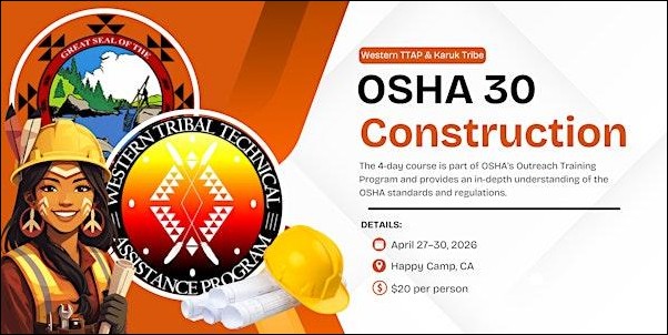 The Western Tribal Technical Assistance Program (WTTAP) is hosting an OSHA 30-hour safety training course designed for workers and supervisors in the construction industry.