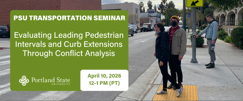 The Transportation Research & Education Center (TREC) is hosting a free webinar to present findings from a Master’s thesis that evaluated the safety impacts of Leading Pedestrian Intervals (LPIs) and curb extensions using detailed conflict data collected at signalized intersections in the Portland, Oregon metropolitan area.