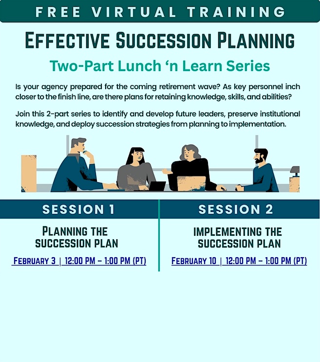 Join CALTAP's 2-part Lunch 'n Learn series on Effective Succession Planning and stop your agency's retirement knowledge loss