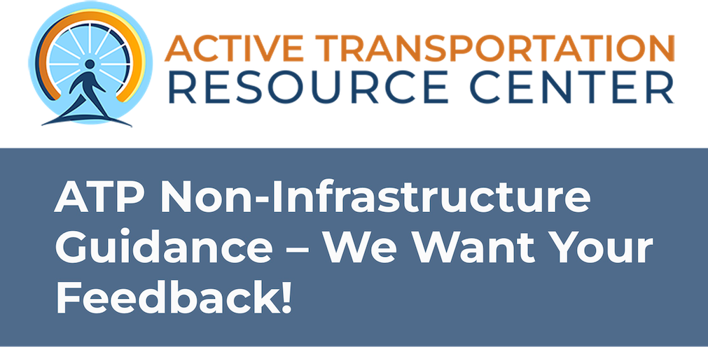 The Active Transportation Resource Center (ATRC) is seeking feedback on the current Non-Infrastructure Guidance, to be updated for use in Cycle 8 of the Active Transportation Program (ATP).