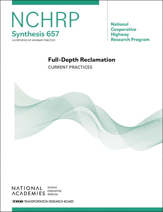 NCHRP's "Full-Depth Reclamation" (FDR) report documents current practices used by state DOTs, including classification of FDR types, site selection, specifications, and guidelines for mix design and test methods to evaluate FDR quality.