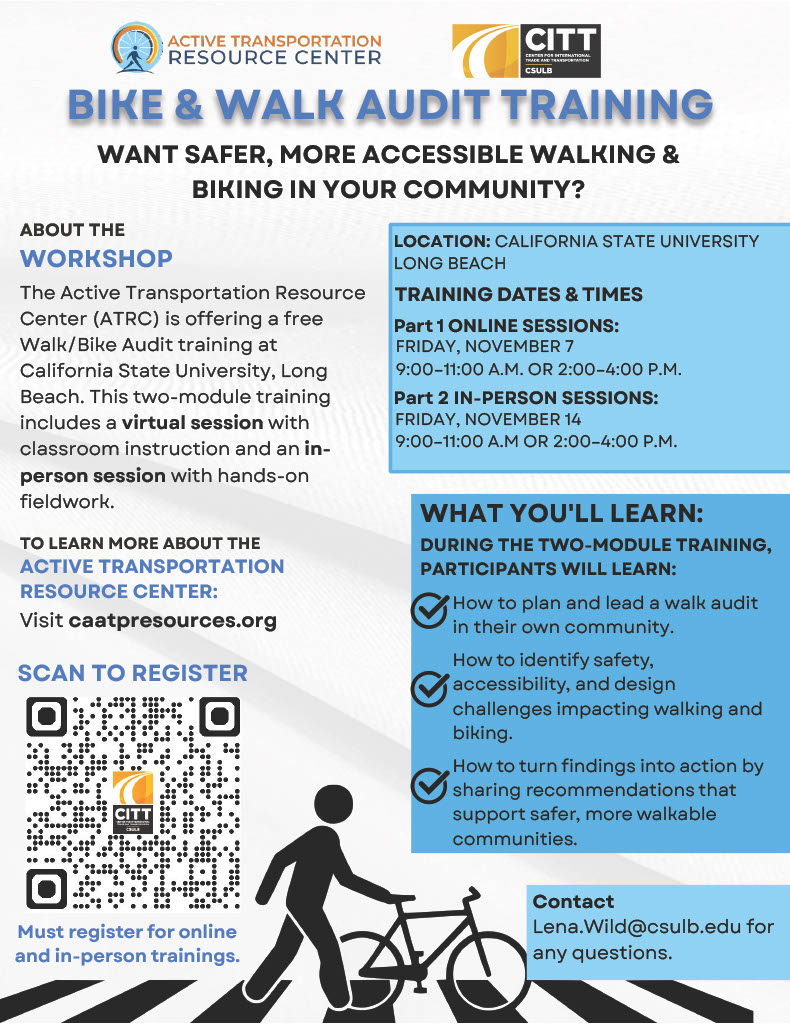 The Active Transportation Resource Center (ATRC) is offering free Walk & Bike Audit training at California State University, Long Beach (CSULB).